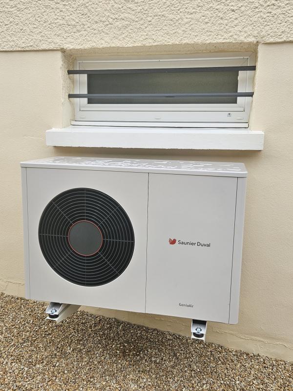 Ce projet à Épron consistait à moderniser le système de chauffage existant en remplaçant une chaudière gaz par une solution hybride plus performante. La pompe à chaleur hybride combine une pompe à chaleur air-eau avec une chaudière gaz à condensation ThemaFast Condens, offrant ainsi une flexibilité énergétique optimale.